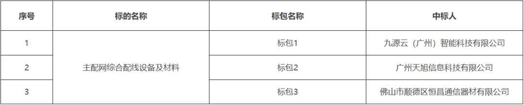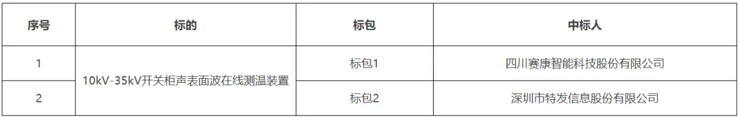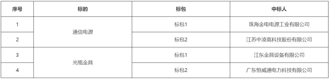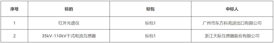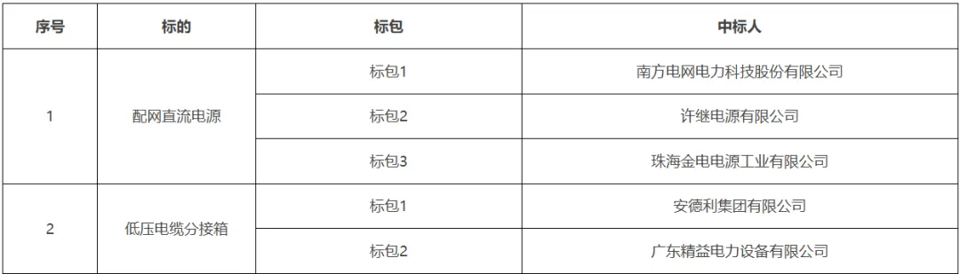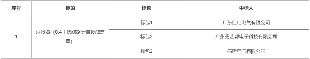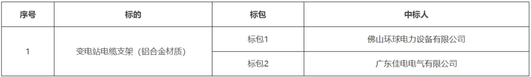 低压电缆分接箱框架招标中标结果公告