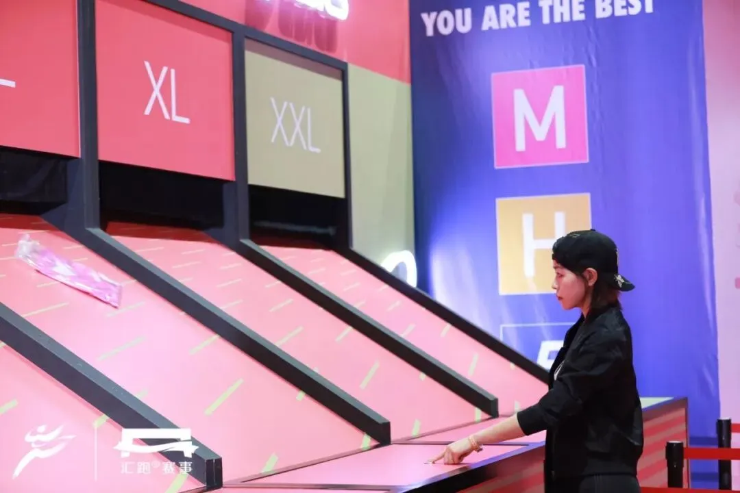 选手可以先在试衣区挑选合适的尺码,然后找到对应尺码的贩卖机。