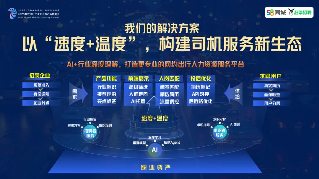 速度层面,通过AI垂直模型、招聘Agent等工具,帮助运力企业快速筛选并触达高意向求职者,缩短招聘周期,降低单次招募成本。 温度层面,借由职位保真核验、虚假信息拦截保障求职安全;提供AI面试、入行指导等服务降低新手门槛;并联合企业推广健康关怀、司机驿站等举措,提升司机归属感与留存率。