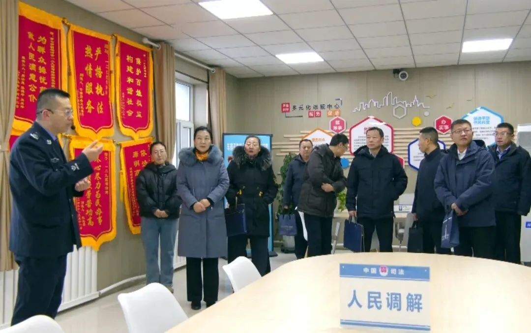 活动中,与会人员参观了一二九团综治中心、司法所及淮安里社区“红蓝先锋”调解工作室,现场了解规范化建设、矛盾调处流程及品牌运作模式。