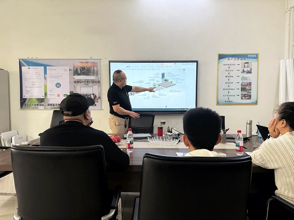 在交流环节中,双方围绕当地原料适配、工艺路线、设备配置及后期运营等关键问题进行了深入沟通。恒德还结合以往项目案例,向客户详细介绍了不同原料条件下的生产方案与成功实践。