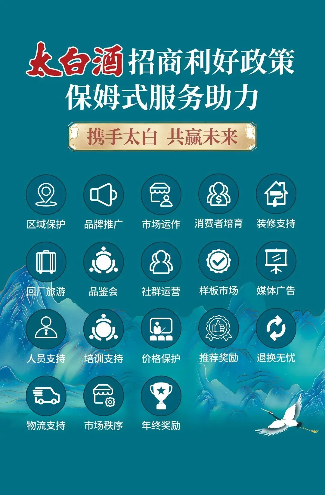 糖酒会现场,广大代理商和消费者的认可给予了太白酒业团队强大的信心,我们坚信厂商携手,共赢太白市场未来。而此次糖酒招商之行,太白酒业也是秉承满满的诚意,推出了18项招商利好政策,帮助经销商化解产品刚入市场遇到的各种风险,使市场的根基得到巩固,确保代理商的利益得到实现。