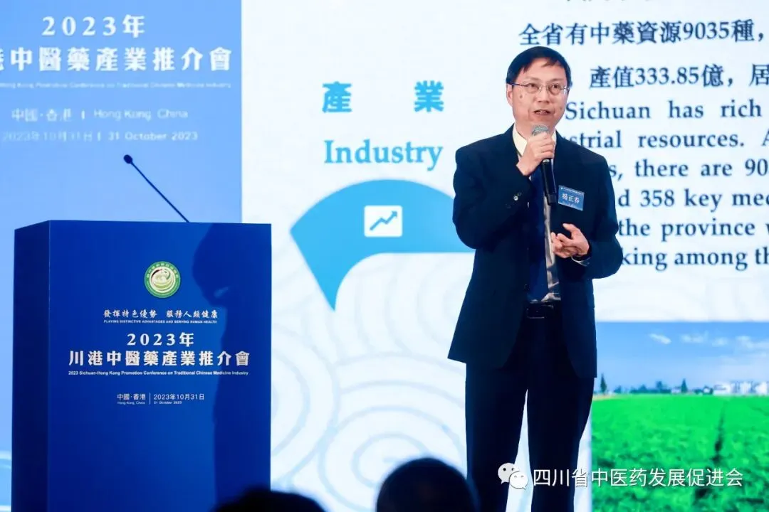 随后,四川省中医药发展促进会会长杨正春就围绕“四川中医药”主题进行了交流发言,香港中医中药界联合总会会长、香港中药业协会创会会长、香港特别行政区政协常委、港区人大代表李应生上台做交流发言。
