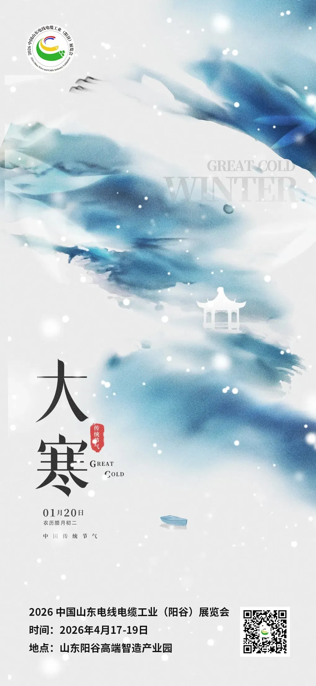大寒凛冽至,岁末寒意浓。在这全年最冷的时节,2026中国山东电线电缆工业(阳谷)展览会暨阳谷电缆品牌推广大会组委会,向您送上最诚挚的关怀与问候。