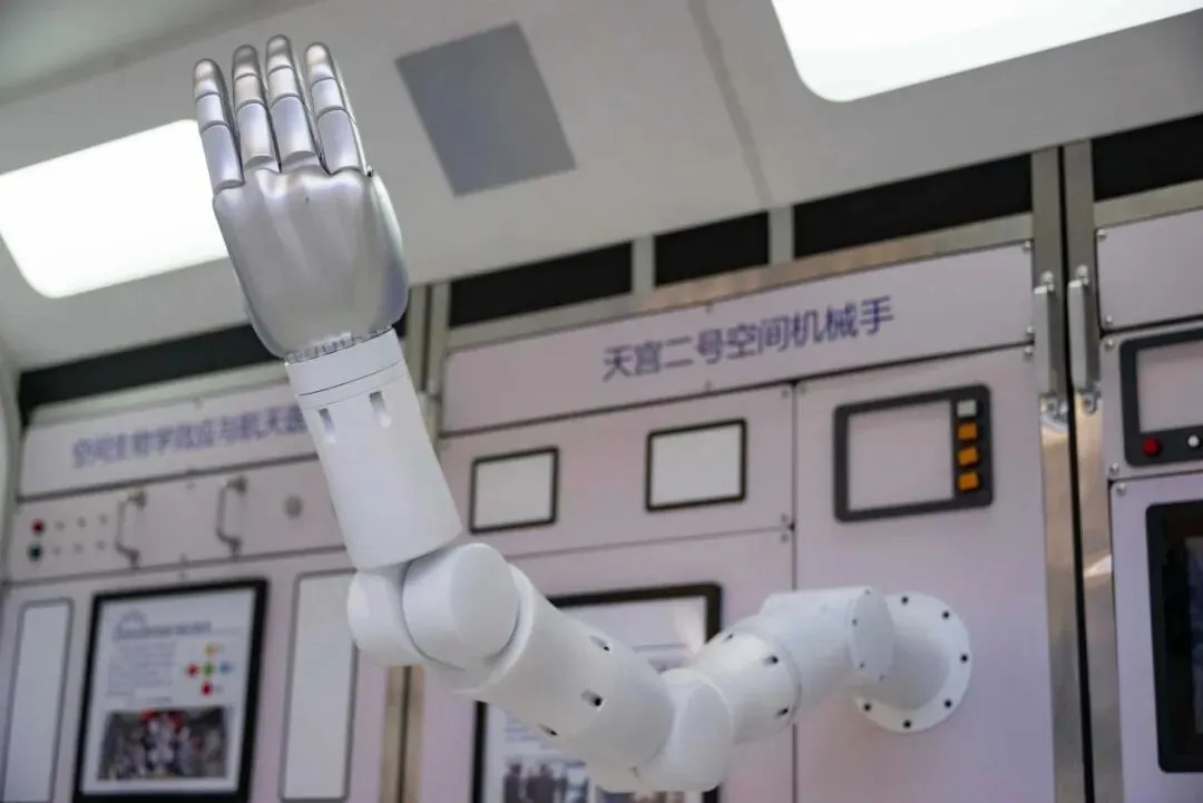 哈尔滨工业大学航天馆内的天宫二号空间机械手模型。