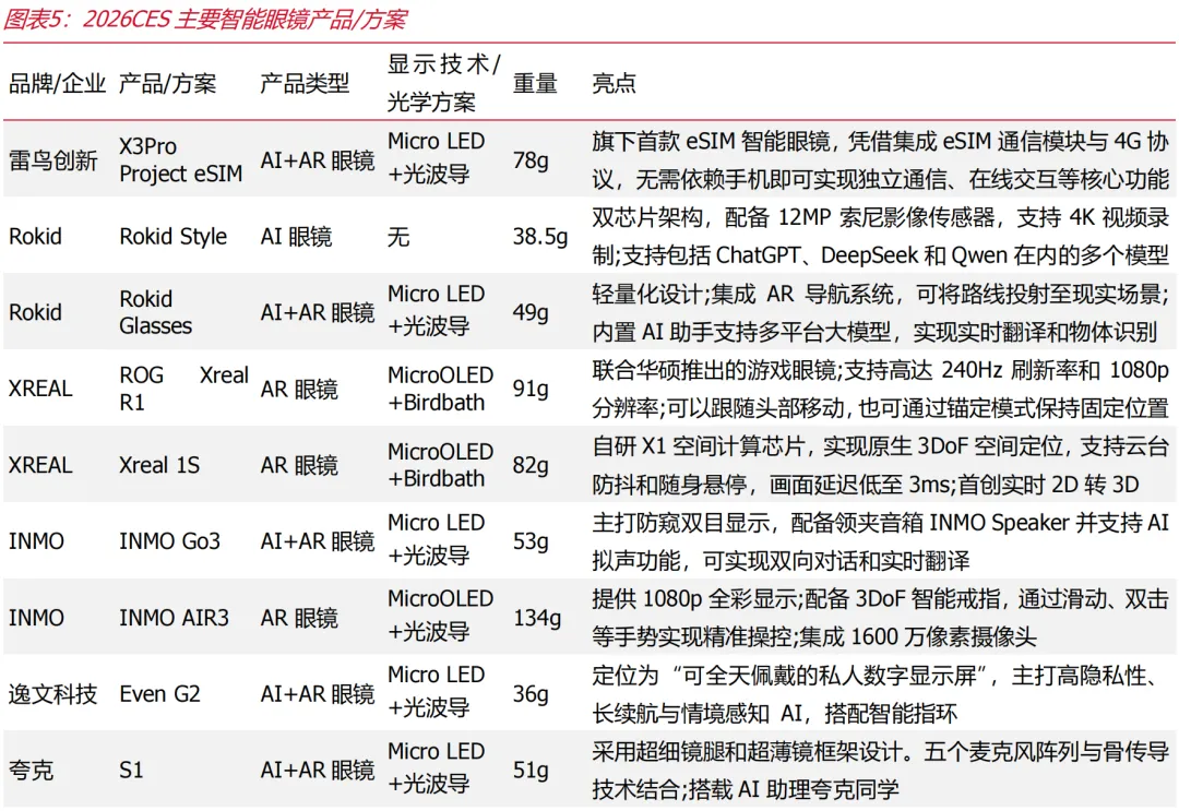从2026年CES展出智能眼镜产品来看,行业发展方向呈现四大特征。1)轻量化:轻量化已成为智能眼镜产品设计的核心共识,也是产品实现全天候佩戴的关键突破方向,莫界带来了25g的单绿显示智能眼镜方案,极米的Memo Air Display为28.9g,歌尔发布的AI智能眼镜参考设计Spinel则为35g,2)显示和光学技术升级:在显示技术方面,Micro OLED、Micro LED、LCoS等方案百花齐放,尤其是Micro LED,搭载这一技术的产品/方案数量绝对领先,在光学方案方面,光波导逐渐成为AR眼镜中高端产品的标配。3)从全能定位转向垂直应用:行业专用与消费级细分场景均实现了突破性进展,不同场景的功能适配性显著增强,在游戏场景中,XREAL与华硕联名推出ROG XREAL R1电竞智能眼镜,运动场景中,韶音推出的OpenVision面向运动爱好者,能够提供实时导航提示与运动数据,健康场景中,追觅展出的AI健康眼镜,配备PPG光学传感器及自研AI健康大模型,办公场景中,影目INMO GO3支持拍照翻译、离线翻译、同传翻译等多种模式,学习场景中,微光科技与教育品牌纳米盒共同研发的AI智能学习眼镜具备拍照录题、智能问答、AI识物解析等功能。4)AI深度融合:以AI深度融合为核心的生态建设提速明显,参展的主流产品均搭载AI芯片并集成了大模型,根据洛图科技线上数据显示,2025年,AI大模型在中国智能眼镜(不含VR/MR)市场的渗透率从2024年的17%增长至40%以上。三、澳门博彩:12月GGR延续双位数增长,高端消费复苏趋势明显