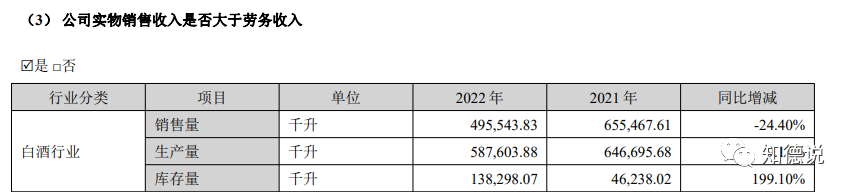 我们看顺鑫农业(牛栏山二锅头)的销售量与生产量变化就知道了,2022年顺鑫农业销售量同比减少24.4%,生产力同比减少9.14%,库存量同比增长199%。这就说明了勾兑类型白酒销售量与生产量都是大幅下降。