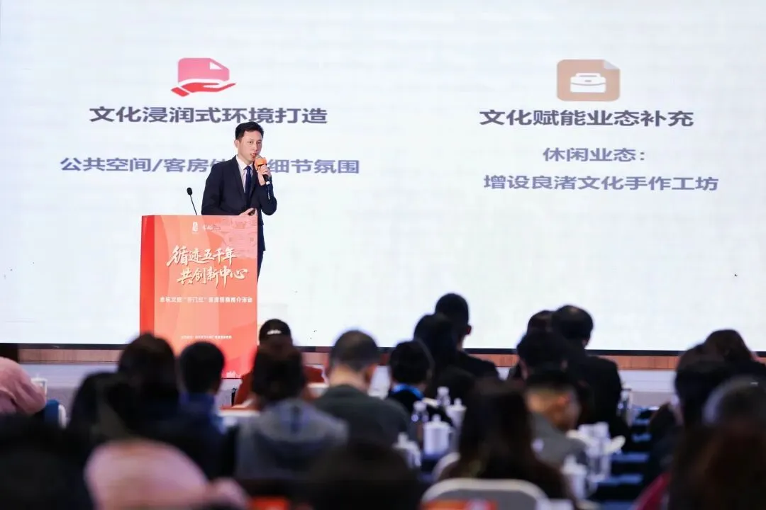 在典型发言环节,良渚君澜度假酒店分享了作为在地标杆酒店,如何深度融入良渚文化IP、提升游客沉浸式体验的服务实践;飞猪旅行平台阐述了如何利用数字生态和流量优势,助力余杭文旅产品创新与线上营销;杭州世际旅行社有限公司与浙江云誉国际旅行社有限公司的代表则从产品研发与市场开拓角度,介绍了成功打造余杭特色旅游线路、精准导入客源的经验与模式。