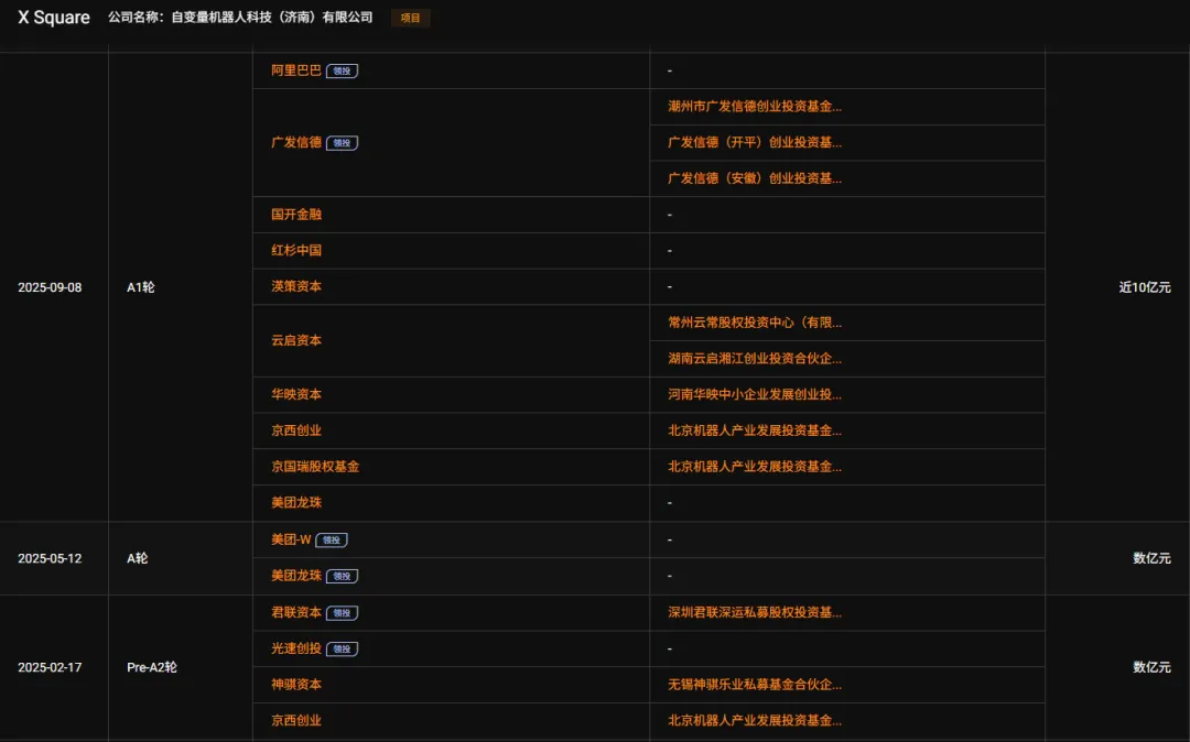 近期,自变量机器人完成10亿元A++轮融资。本轮融资由字节跳动、阿里巴巴、美团龙珠、红杉中国、北京信息产业发展基金、深创投、南山战新投、锡创投等投资机构及多元地方平台联合投资。