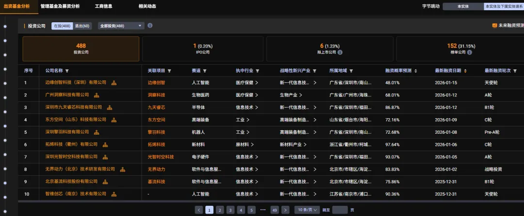 此外,据执中ZERONE统计,截至2026年1月19日,字节跳动通过还通过直投布局了包括影眸科技、昕原半导体、大寰机器人、聚芯微电子等180家公司,通过LP生态布局了包括拓烯科技、无界动力、鸣鸣很忙、思锐智能等在内的超过480家公司。
