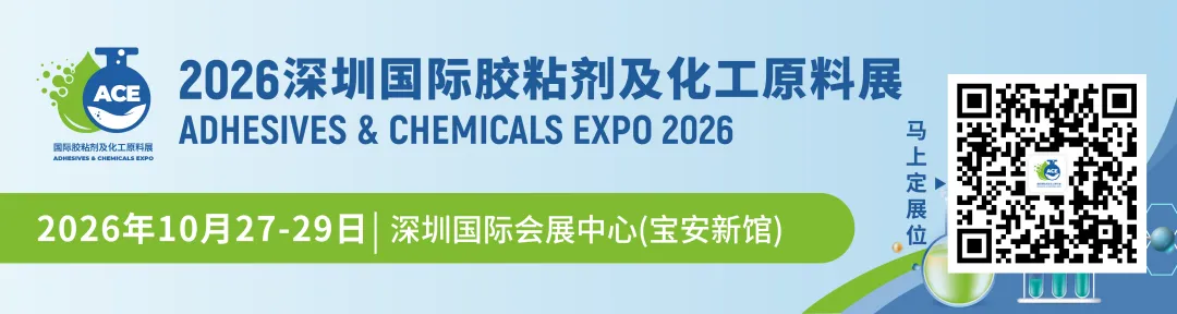 深圳国际胶粘剂及化工原料展(ADHESIVES & CHEMICALS EXPO)将于2026年10月27-29日在深圳国际会展中心(宝安新馆)举办,展会聚焦胶粘剂、胶粘带产品、原料及化工、热管理材料及设备、功能助剂及溶剂、密封剂产品、机械设备及加工等领域,汇聚全球创新技术与应用,旨在打造一站式供需对接、商贸合作的专业平台。