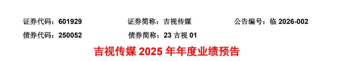 1月16日,吉视传媒发布2025年年度业绩预告。