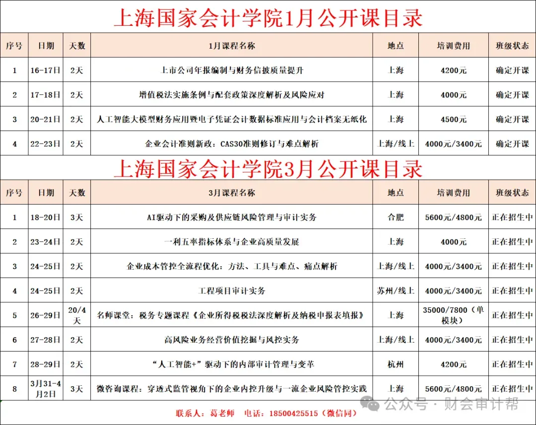 七、收费标准1.培训费:线下5600元,线上4800元。 2.食宿统一安排,费用自理(具体标准以开课通知为准)。3.费用支付方式:培训费由上海国家会计学院收取,支付宝/微信扫码、汇款。食宿费由酒店收取,现场支付。