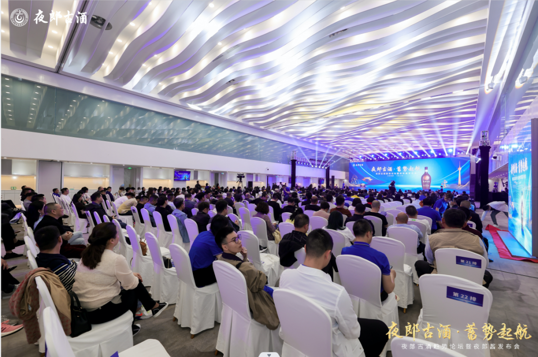 早在糖酒会正式启幕前,夜郎古酒在成都世外桃源酒店和城市名人酒店的两处“酱源秘境”主题展厅,就已经是人头攒动、热闹非凡。据悉,为了回应公众的热切期待,夜郎古酒于4月7日就开放了展厅,并在开放当天就迎来了大量慕名而来的参观者。步入展厅,古朴与现代结合的展厅设计融合品牌视觉识别元素,如同奇妙的时光回廊,将夜郎古国的瑰丽神秘、枸酱技艺的悠久古老、余家烧坊的传承创新向参观者娓娓道来,并最终凝聚在酱香浓郁的夜郎古酒中,让人沉浸式体验品牌与产品背后的历史渊源与文化底蕴,也对“古法酱香 源起夜郎”的品牌定位有了更加深刻的印象。可以毫不夸张地说,“酱源秘境”主题展厅就是一本能让人游历其中的精美品牌画册,成为了白酒品牌文化传播的创新范本。截至目前,夜郎古酒两大主题展厅接待人流量已经超过数十万人次,通过本届春糖,品牌声量得到了传播扩大,夜郎古酒工作人员也表示,接下来“酱源秘境”主题展厅还将持续优化迭代,并绽放更多城市,和更多人一起探寻“中国酱酒之源”。4月10日,作为夜郎古酒本次春糖重头戏之一的 “‘蓄势·起航’论坛暨夜郎酱新品发布会”在成都安得天馨酒店盛大启幕,行业领导,复星国际董事长郭广昌率复星、豫园、舍得众多高管出席,一众白酒泰斗、酒业专家齐聚一堂,围绕酱酒行业趋势与夜郎古酒品牌发展前景展开研讨。在复星酒业合伙人、复星科创合伙人、夜郎古酒业有限公司董事长余方强的开场致辞中,他反复设问“蓄势起航,势在哪里?”并从品类、产区、生态、战略、产品等维度进行了掷地有声的回答;