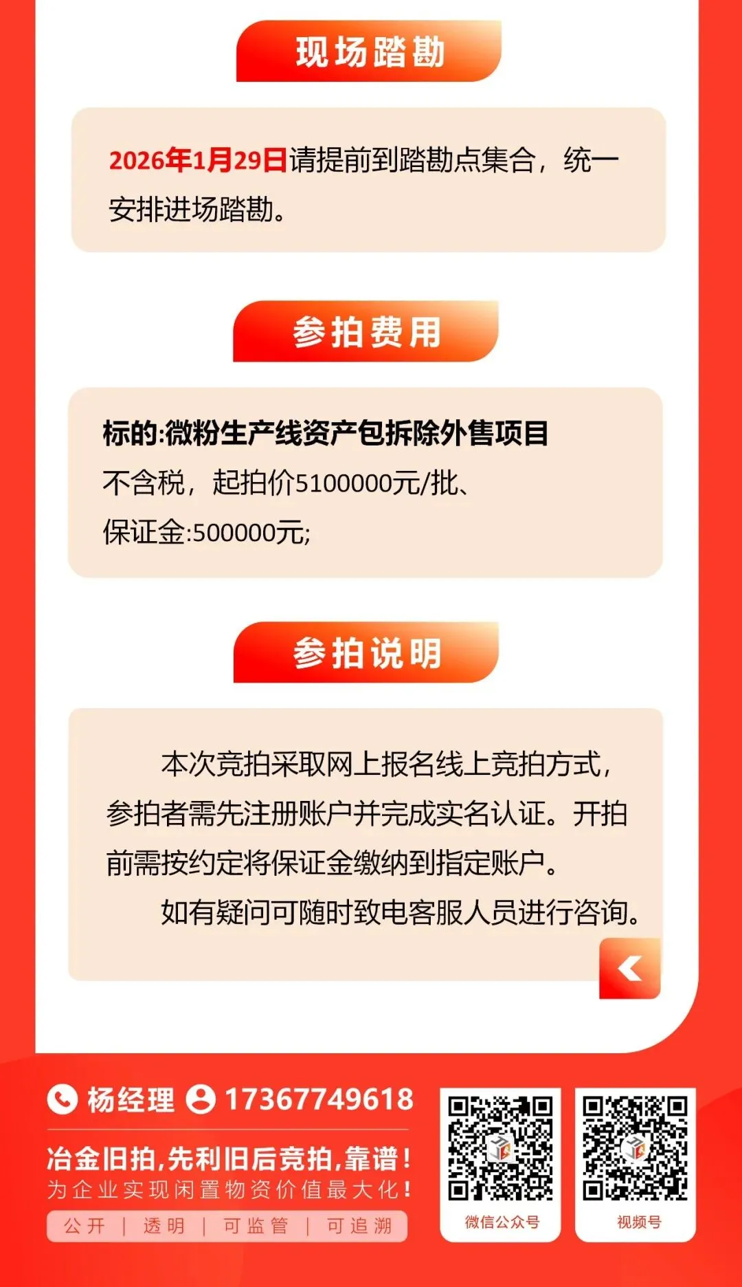 【山东】微粉生产线资产包拆除外售,510万元/批起,1月30日开拍,可踏勘!