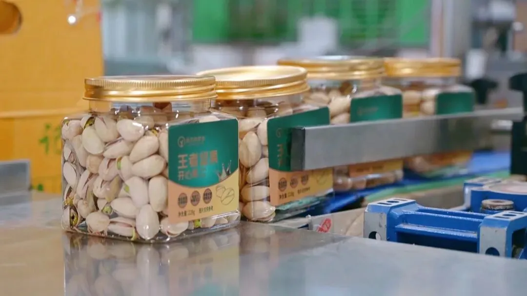 同样位于中国坚果果干食品城的姚生记食品有限公司,也是一片忙碌、热闹的景象。车间里,飘出山核桃经过煮制、敲打、入味和烘干后的浓郁香气。这些承载传统工艺的果仁,最终流入现代化包装流水线。为应对春节订单高峰,450多名员工两班倒,40多条产线昼夜不停。