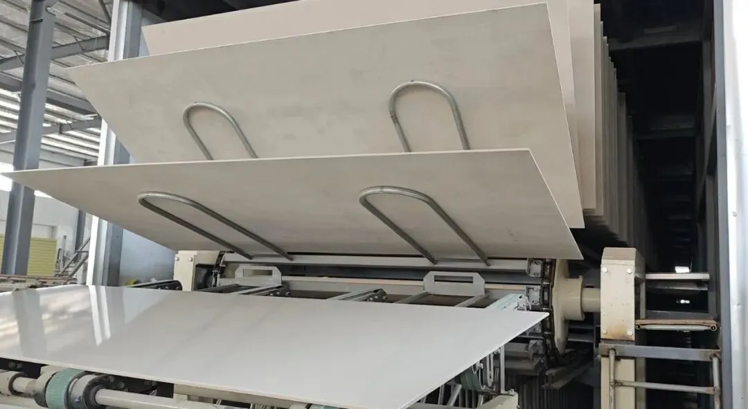 无论是陶瓷一体板、保温一体板,还是保温装饰一体板的生产,整条生产线都能无缝适配。无需大量人工干预,普通员工经简单培训即可上手,彻底告别传统生产线人力密集、效率低下的痛点。淋胶环节精准控量、均匀覆胶,复合环节智能调控压力与速度,烘干环节高效稳定,三重保障让成品品质统一,同时连续作业能力强、故障停机损耗低,兼顾省人、高效、省耗材多重优势。