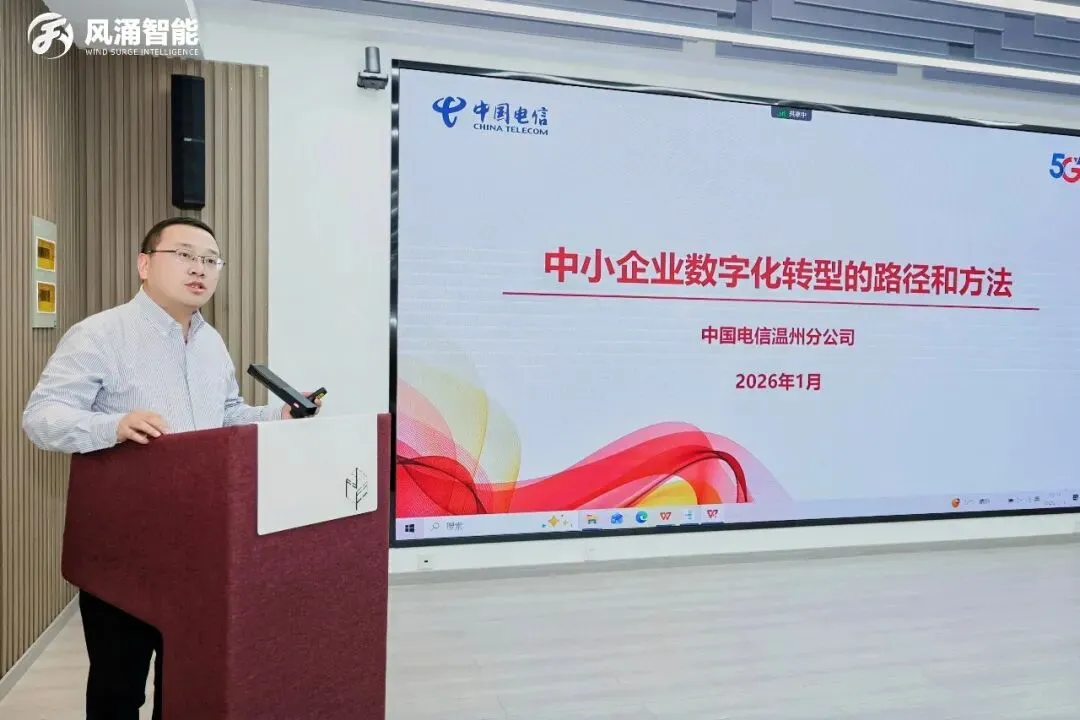 中国电信股份有限公司温州分公司曹玉哲系统阐述了《中小企业数字化转型的路径和方法》,结合通信技术优势,为企业提供从诊断咨询到实施落地的全周期服务支持。