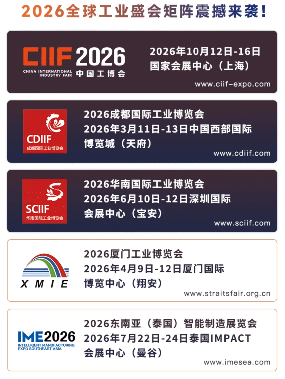 2026中国国际工业博览会已蓄势待发,它将不仅仅是一场展览,更是一场关乎全球工业未来走向的思想盛宴与行动集结。我们诚挚邀请全球工业领域的创新者、领军者和实践者加入我们,在这个顶级舞台上: