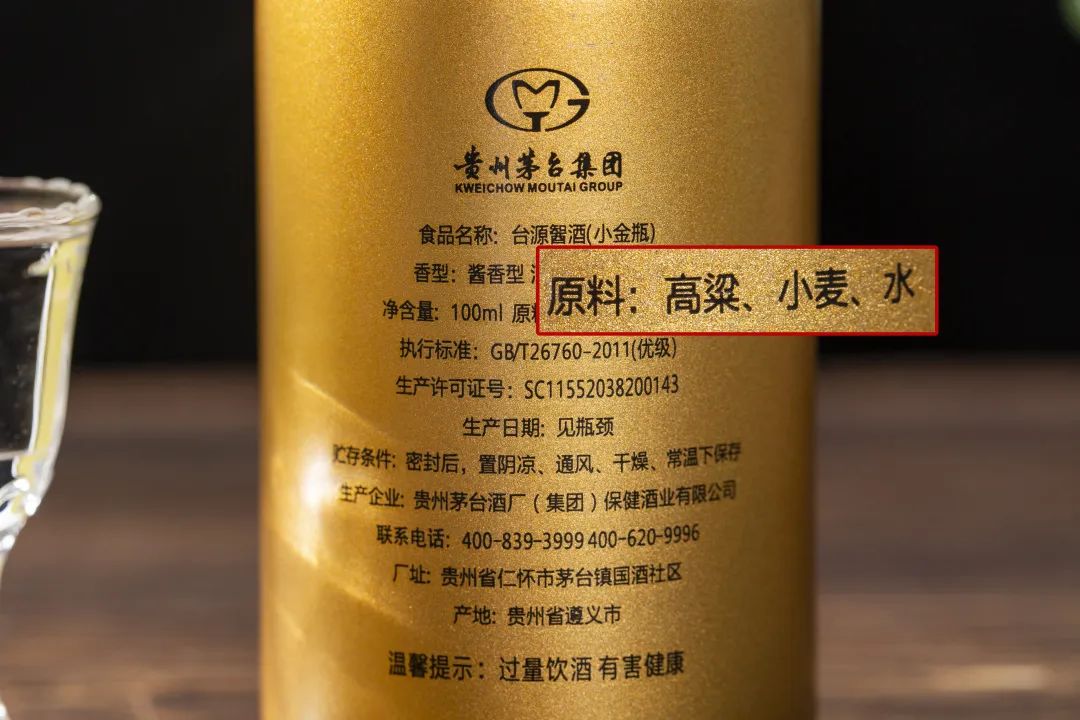红缨子高粱、小麦和赤水河水的纯正原料,不掺一点点酒精、香精和糖精,其他地方无法复制。