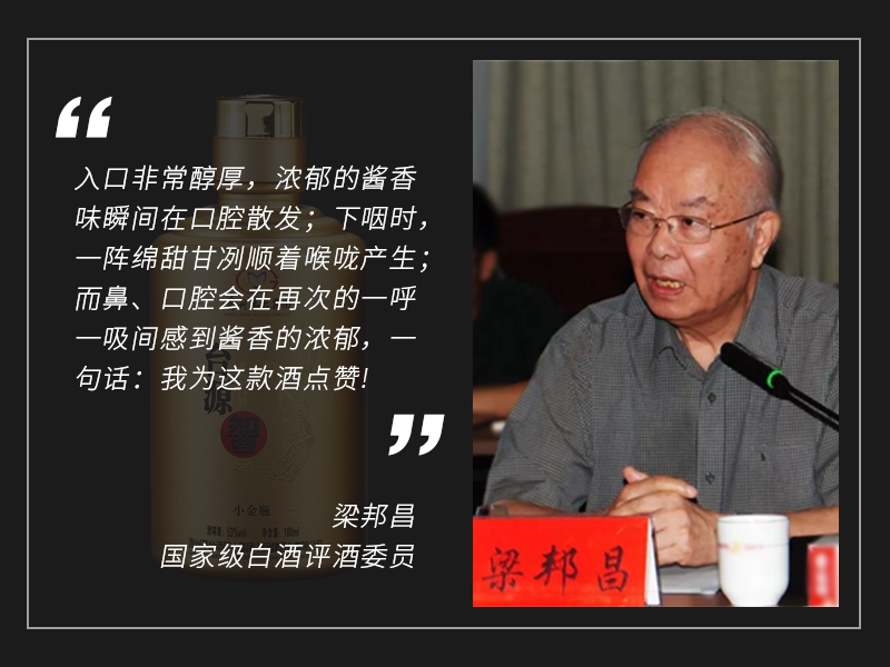 就连「国家级白酒评酒委员」梁邦昌都在为小金瓶点赞:入口非常醇厚,浓郁的酱香味瞬间散发,绵甜甘冽。