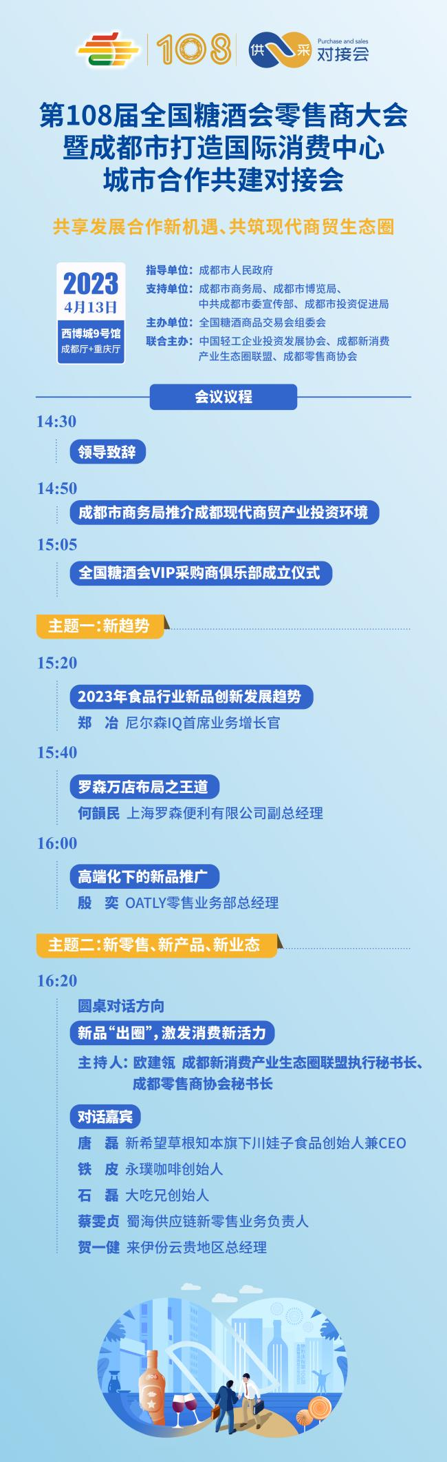 由全国糖酒商品交易会组委会和中国轻工企业投资发展协会共同主办的“第108届全国糖酒会零售商大会”将于4月13日在成都中国西部国际博览城举办。