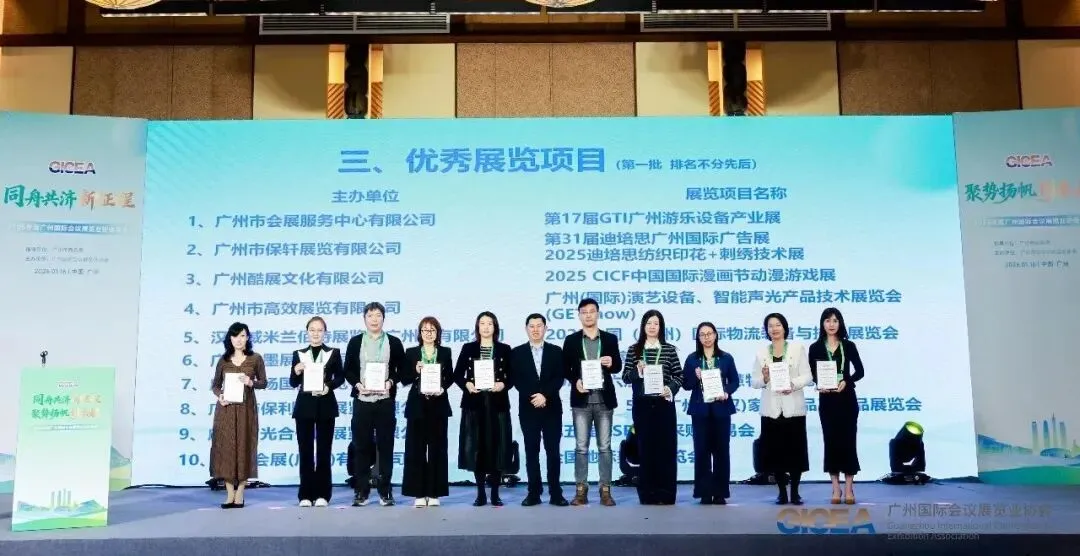 2025年度广州国际会议展览业协会年会于1月16日在广州举办,年会以"同舟共济新征程 聚势扬帆创未来"为主题,由广州市商务局指导,广州国际会议展览业协会主办。此次评选活动旨在表彰在会展业高质量发展中表现突出的优秀项目,经过严格评审,全国地标美食博览会最终脱颖而出。