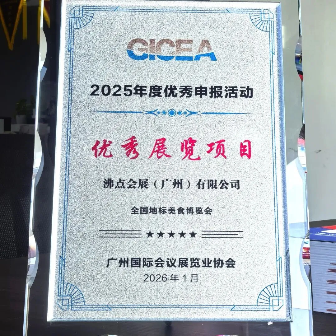近日,在2025年度广州国际会议展览业协会年会上,由沸点会展(广州)有限公司主办的"全国地标美食博览会"被评选为"2025年度优秀展览项目",这一殊荣充分彰显了该展会在推动地方特色美食产业发展和会展业创新方面的突出贡献。