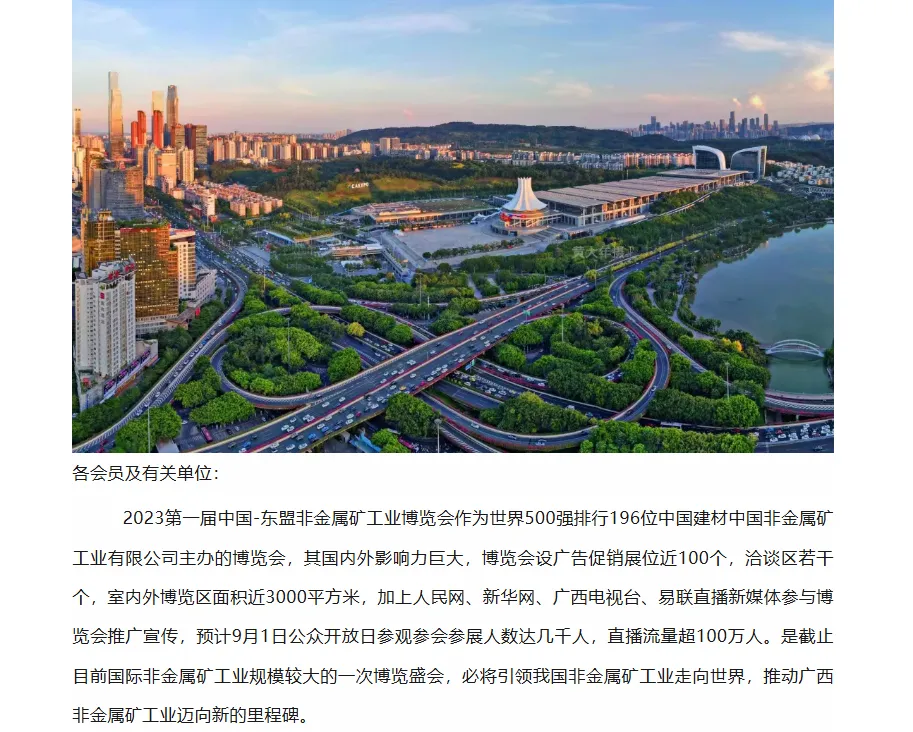 【第三轮会议通知】第一届中国-东盟非金属矿工业博览会8.31-9.2日在南宁盛大举行,9.1日公众开放日免费参观博览区,领伴手礼