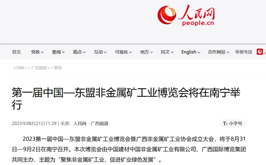 人民网隆重报道“第一届中国—东盟非金属矿工业博览会在邕举行”