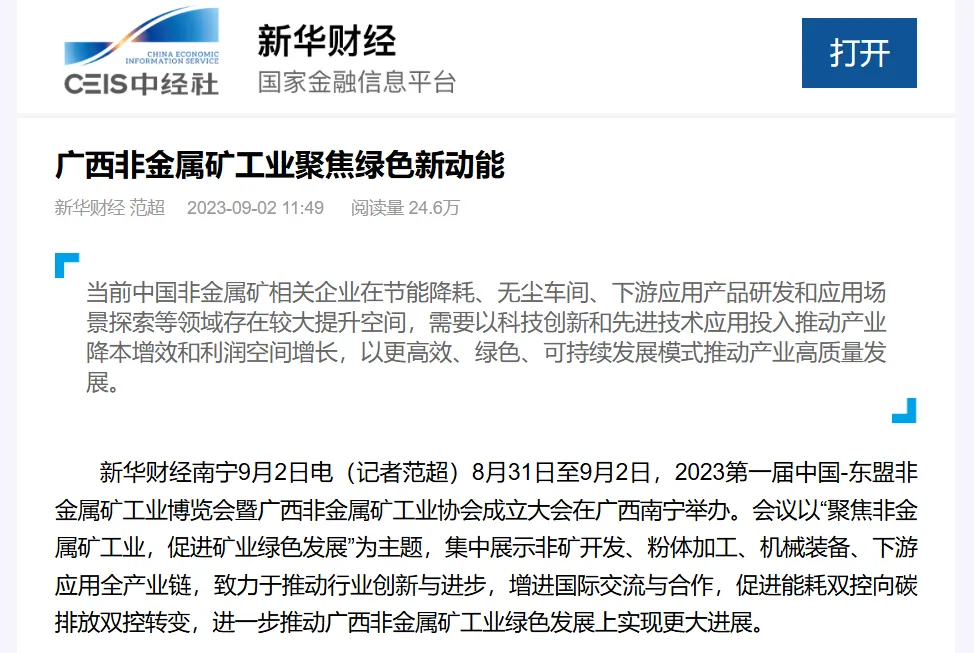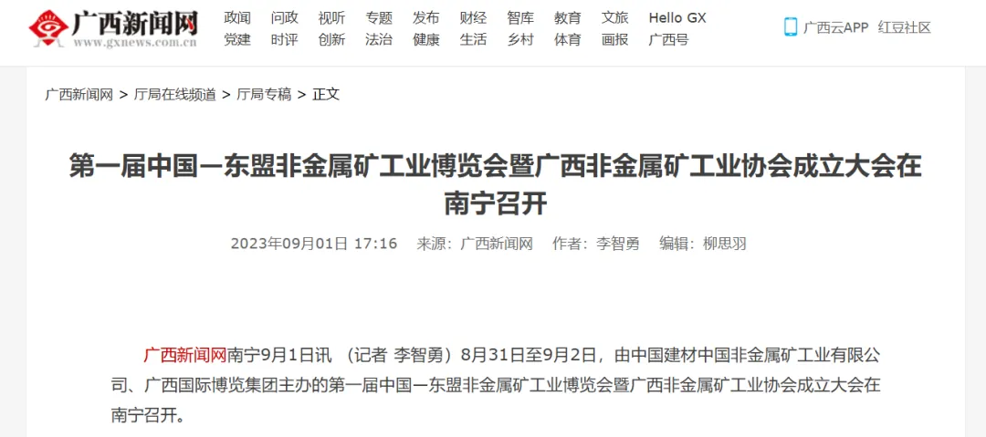 新华网隆重报道2023第一届中国-东盟非金属矿工业博览会暨广西非金属矿工业协会成立大会在广西南宁举办。
