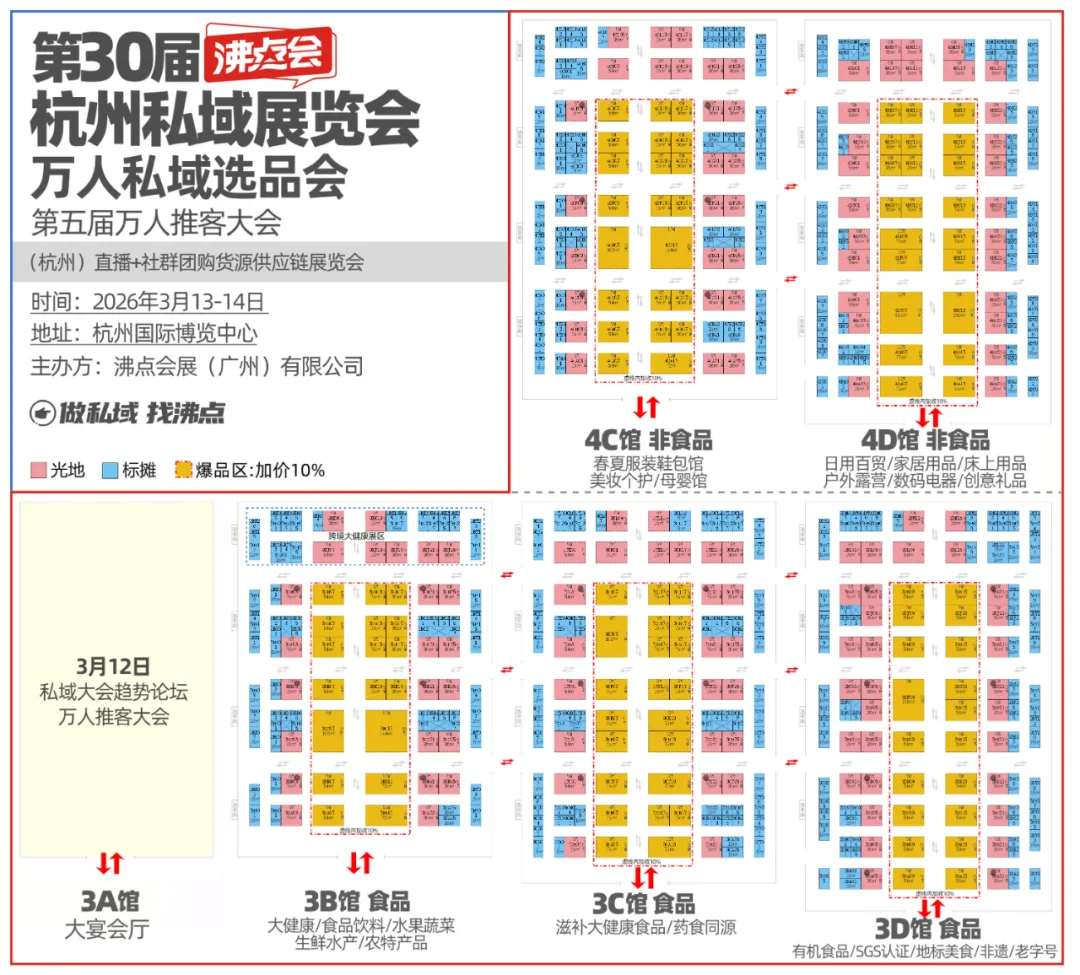 想要逛5万平的超大私域爆品展?报名方式看这里!2026年3月13-15日,杭州国际博览中心(3B/3C/3D/4C/4D)6大展馆将全部开放,参展和参会双通道同时开放,助你锁定开年的第一波资源!