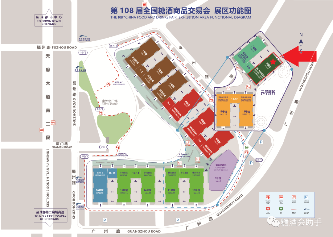 ⇧ 第108届全国糖酒会进口及烘焙食品展区位置图