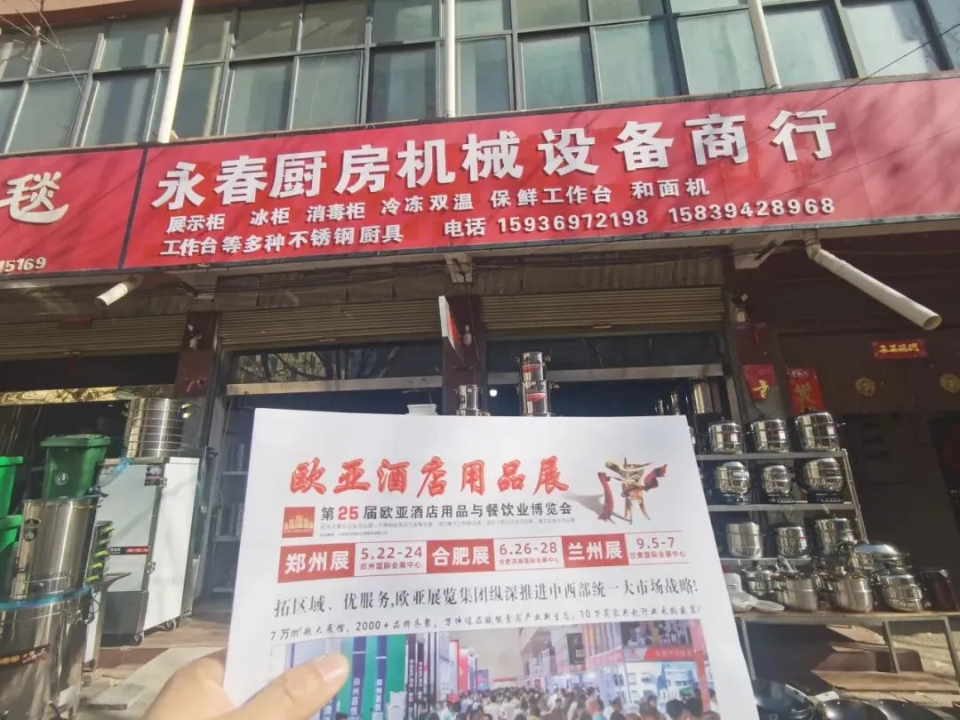 本轮欧亚招观团队先后前往了周口市、项城县、扶沟县、西华县、商水县、沈丘县、郸城县、太康县、鹿邑县等,向各个品牌代理商全面介绍欧亚酒店用品与餐饮业博览会的实力、亮点与优势——展会规模已跃居全国行业前三甲(是继广州和上海之后的第三大行业展会)、具备强大的资源汇聚与高效交易能力、具备全产业链覆盖的展品体系等。