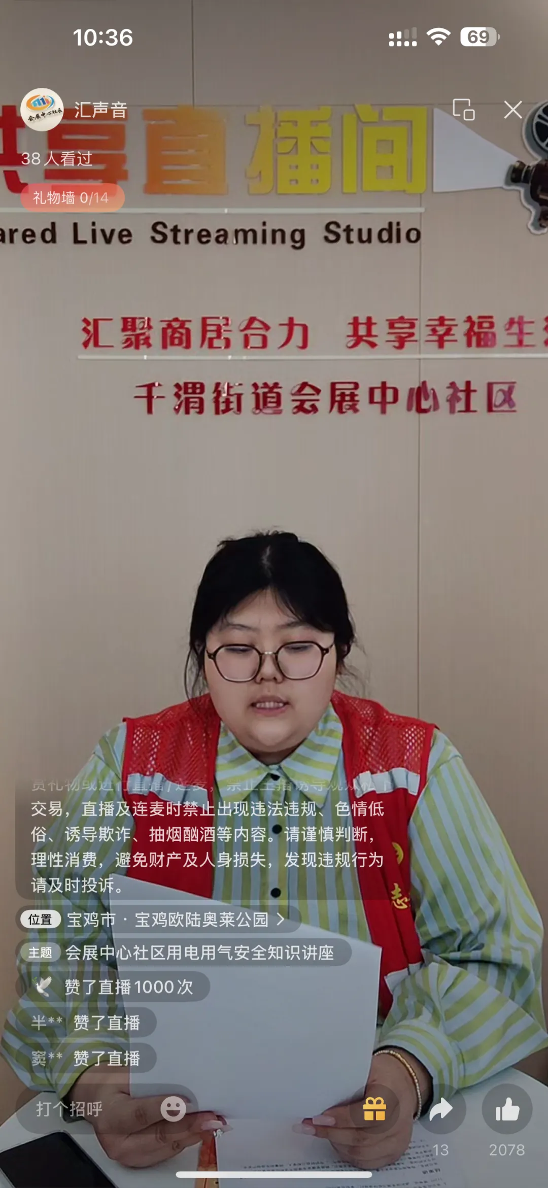 2026年1月20日上午,在奥莱党群驿站,千渭街道会展中心社区开启专场直播,一边是实用满满的用电用气安全科普,一边是热血澎湃的征兵政策解读,“知识讲解”的模式干货拉满,吸引众多居民朋友观看、多条留言互动,既守住了民生安全底线,也点燃了青年报国热情!