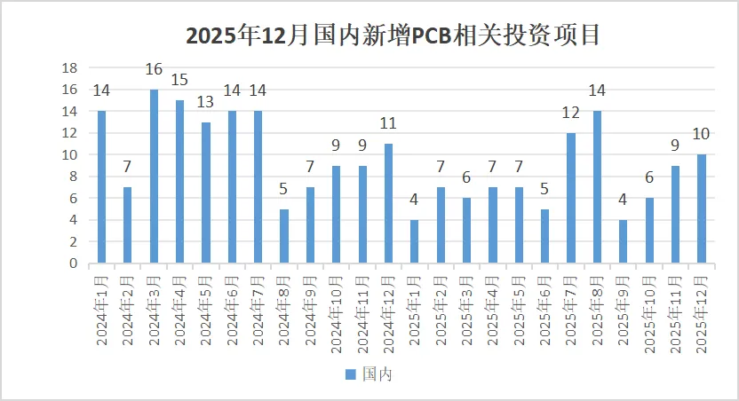 图1 2025年12月国内新增PCB相关投资项目