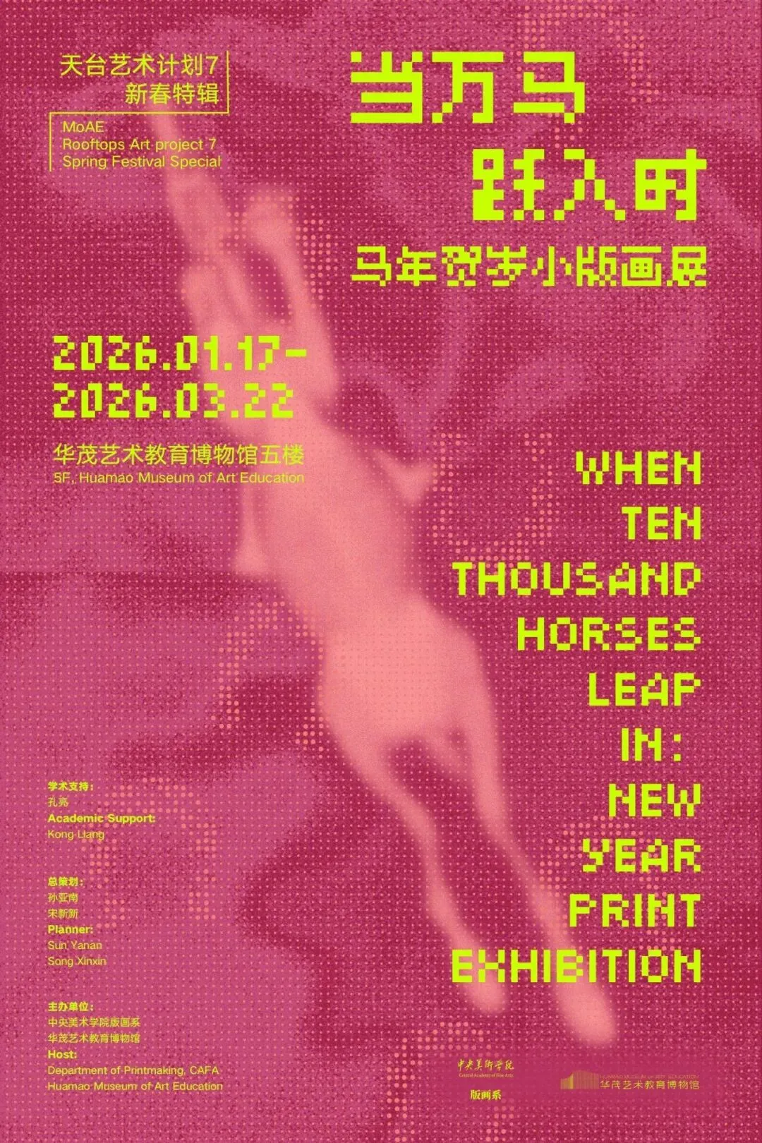 艺术教育,应在空间中生长。华茂艺术教育博物馆致力于让艺术教育生动可感,我们珍视版画这一兼具深度与美育传播力的艺术形式,并长期关注、收藏版画佳作。此次“天台艺术计划”首次开启馆校合作,让承载着“马到成功”祈愿与“天马行空”想象的贺年版画,从传统语境中轻盈跃出,涌向甬城。当万马跃入天台,艺术便奔向了千家万户。