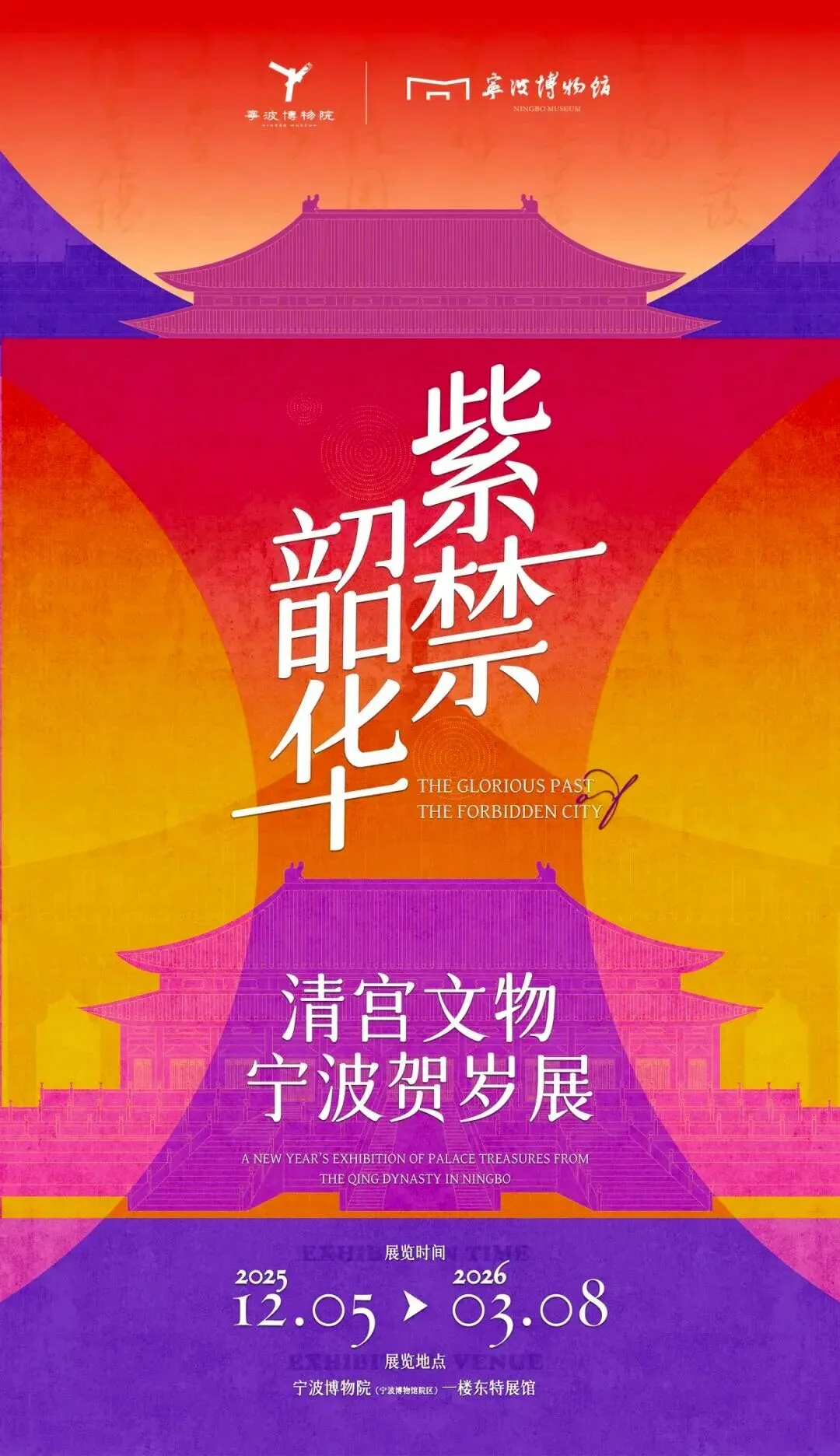 “紫禁韶华——清宫文物宁波贺岁”展依托故宫博物院、天津博物馆、沈阳故宫博物院的清宫文物珍藏共计185件(套),将全景式呈现清代宫廷生活的艺术风貌。展览分设四大板块:“云裳之制”展现礼制织绣之美,“佳节器象”品味时节器用之意,“栖居意趣”领略空间营造之韵,“心印天地”探寻精神信仰之境。衣、食、住、信,共同勾勒出清代宫廷生活的艺术长卷,引领观众步入一幅充满仪式感与吉祥寓意的宫廷生活图景。