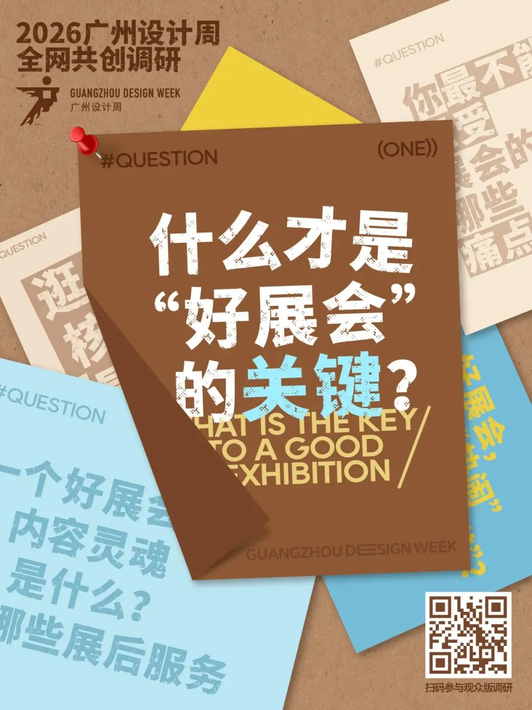 我们深知,“好展会”的关键从不是主办方的单向定义,而是每一位参与者的同心共创。为了精准回应展商的转化期待、设计师的资源渴求、合作伙伴的联动诉求,以及观众的体验向往,广州设计周正式发起《什么才是“好展会”的关键?》全网共创调研,用真实反馈定义行业标准,用数据洞察赋能2026广州设计周升级!