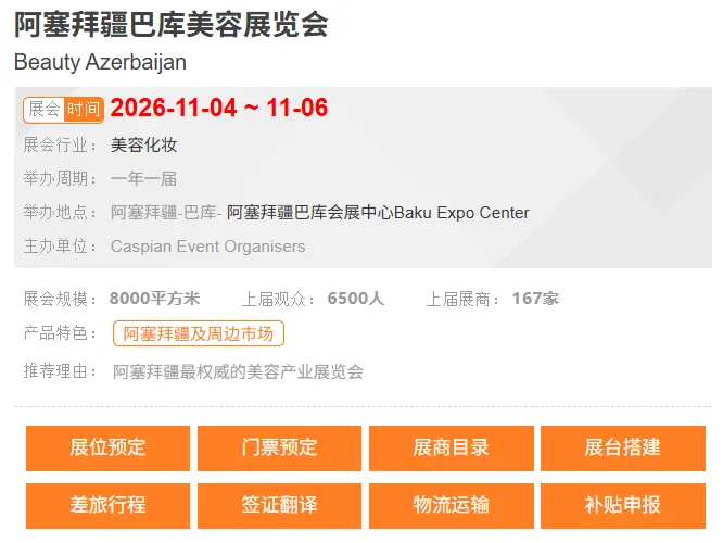 2025 年阿塞拜疆美容化妆品市场规模达3.2 亿美元,年增长率12%,预计 2026 年将突破3.6 亿美元
