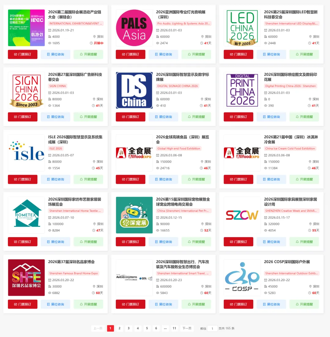 关注【展会全知道】微信公众号,在聊天对话框内回复【深圳】查看近期深圳展会信息、门票、展位预约入口