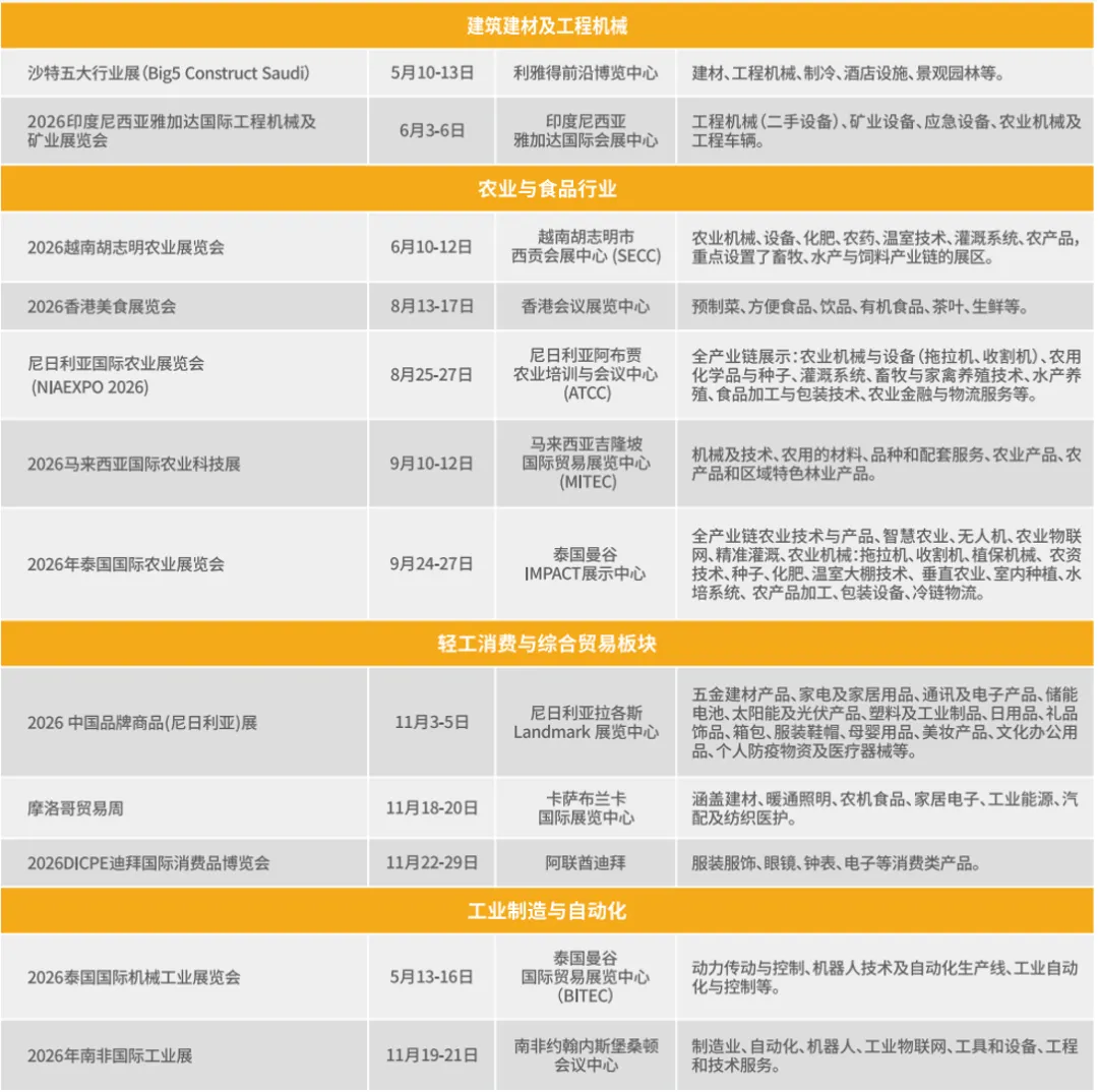 驭势而行,赋能全球。为了积极响应国家支持企业出海的政策导向,把握时代红利,并在2026年切实带动更多企业开拓对非市场,湖南省中非经贸合作促进研究会展览中心正式发布《展览中心2026年境外展展览计划》,助力合作伙伴在变革中精准卡位,共同驱动“中国制造”在全球版图闪耀!