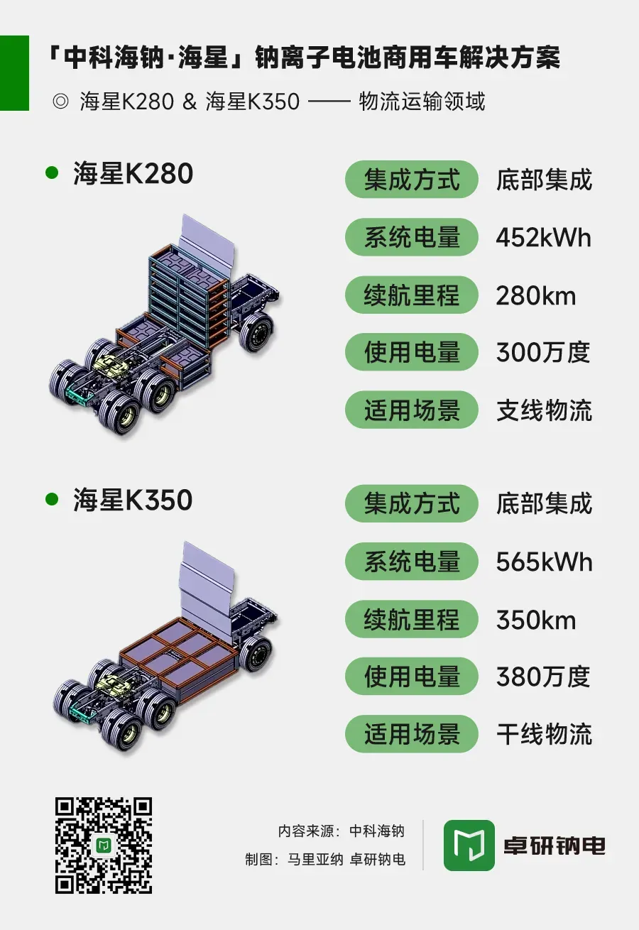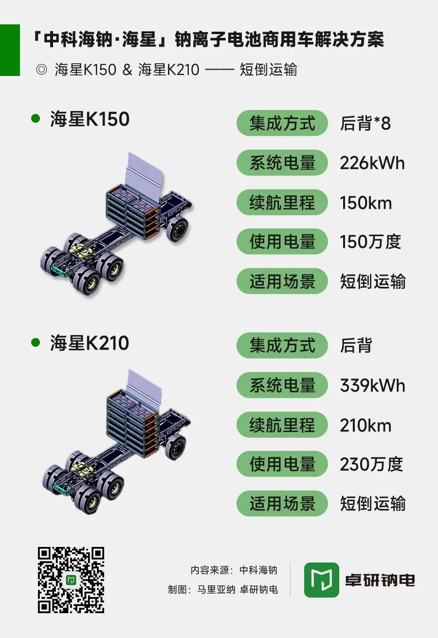 发布会上,中科海钠重磅推出「中科海钠·海星」钠离子电池商用车解决方案,包括“海星K150”、“海星K210”、“海星K280”和“海星K350”四款产品型号。