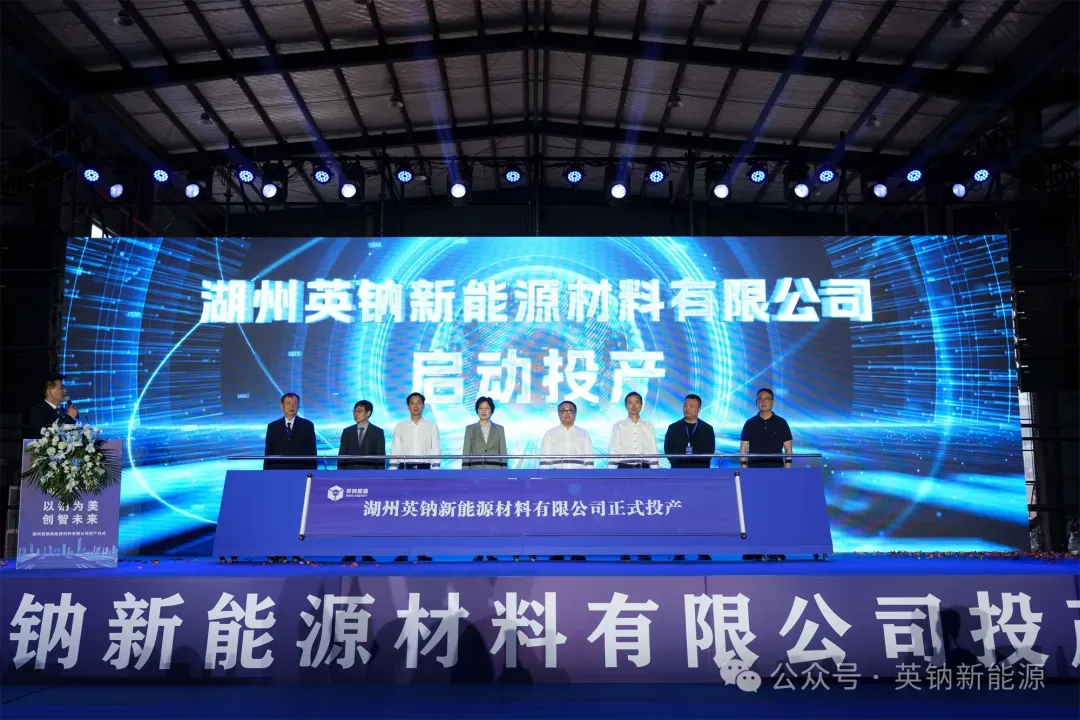 2025年5月8日,位于湖州英钠新能源材料有限公司子公司长兴英钠新能源材料有限公司的厂区,英钠新能源首条聚阴离子正极材料规模化量产线的投产仪式隆重举行,开启了万吨级钠离子电池聚阴离子正极材料的量产新篇章。
