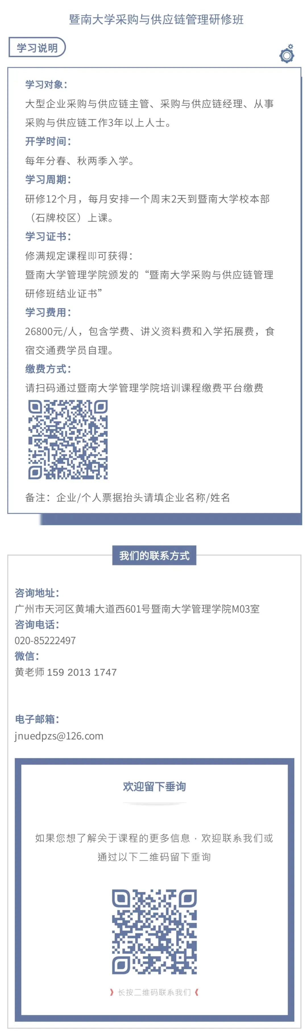 与老师们教学相长,暨南大学采购与供应链管理研修班,依托暨南大学工商管理教育的强力支撑,由管理学院有着丰富教学经验的教授和具备多年企业实践经验的老师共同组成教学团队。