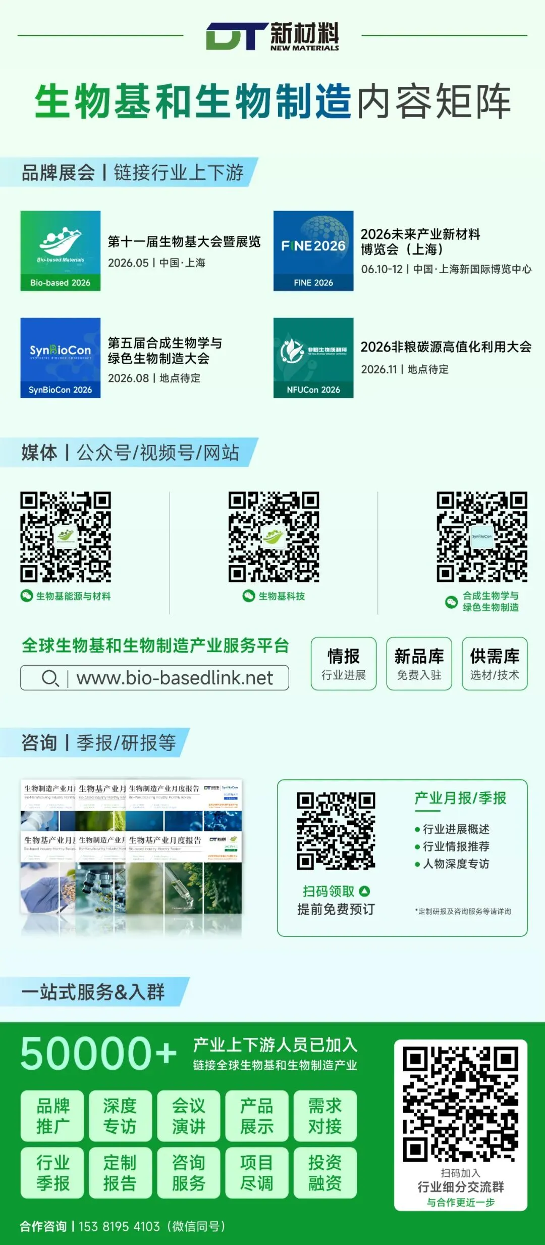 点击阅读原文,登录DT生物基与生物制造官网www.bio-basedlink.net获取更多产业信息与服务