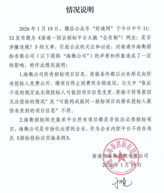 详见:南通一国企招标平台大搞 “会员制”!网友:是否涉嫌违规?