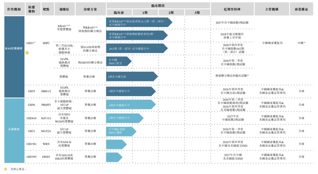 2018年,勤浩医药开始正式转型做创新药研发,聚焦“难以成药”靶点。SHP2抑制剂GH21管线就是公司从技术服务转型做新药研发的第一个项目。GH21在2021年获得国家药监局批准用于GH21单药治疗晚期实体瘤的临床试验默示许可(IND)。