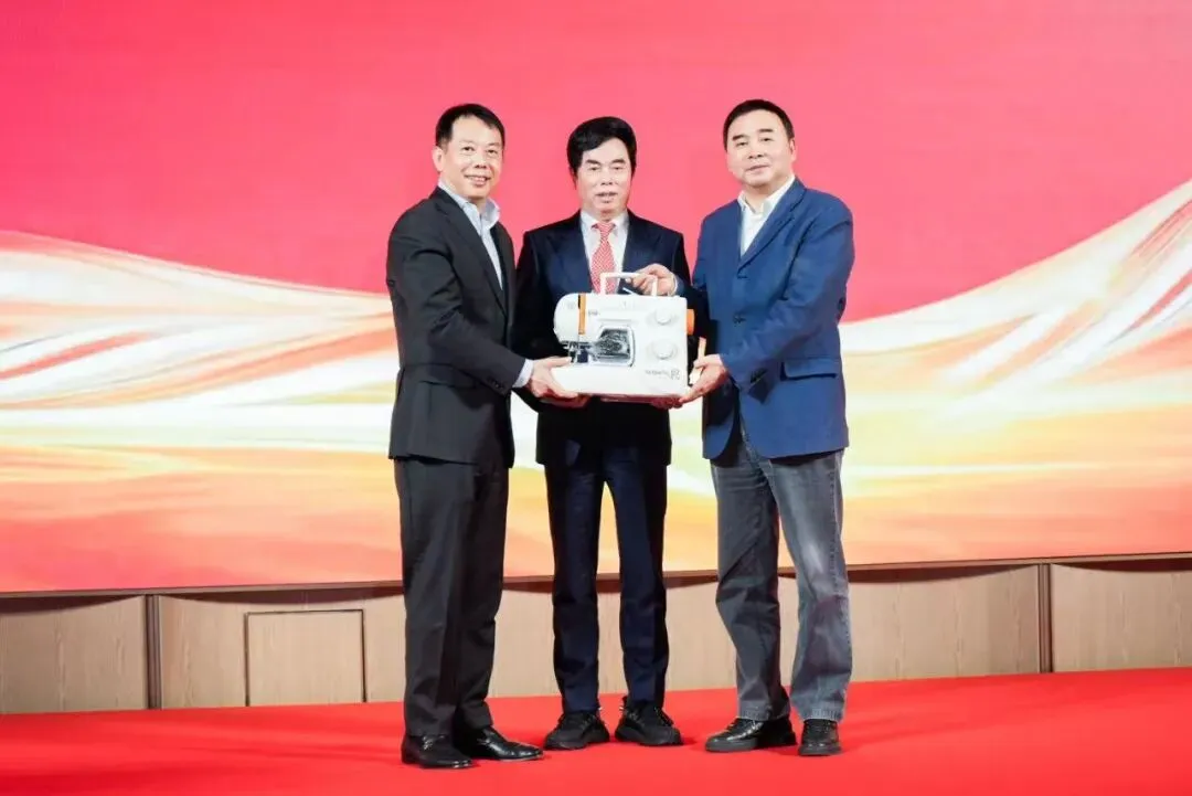 主题演讲环节,7 位行业精英与权威专家围绕关键领域分享前沿洞见。上工申贝(集团)股份有限公司董事长张敏博士围绕《携手迈向智能缝制新未来》,探讨了智能化技术在缝制领域的应用与发展。大会特别设置了赠机仪式:上工申贝(集团)股份有限公司向高晓东会长赠送上海上工蝴蝶牌缝制机。这款缝纫机意义非凡,与 2014 年习近平主席携夫人彭丽媛女士访问斯里兰卡时赠送的 600 台上工蝴蝶牌缝制机为同款,既是企业间深厚情谊的见证,也彰显了中国纺织装备的过硬品质与行业担当。