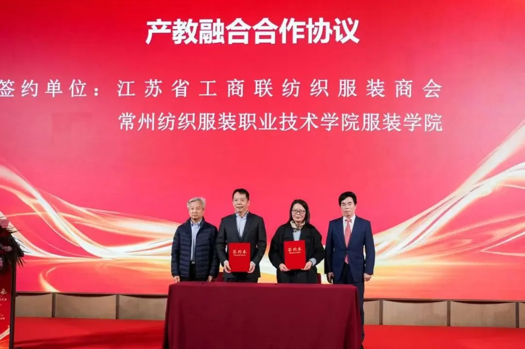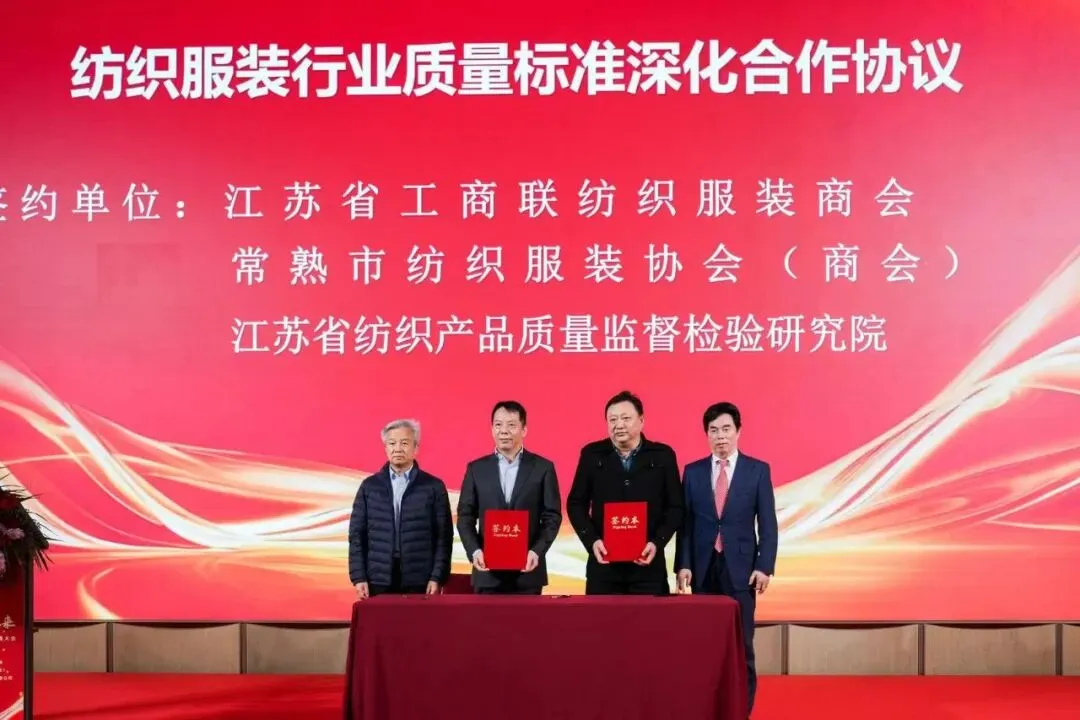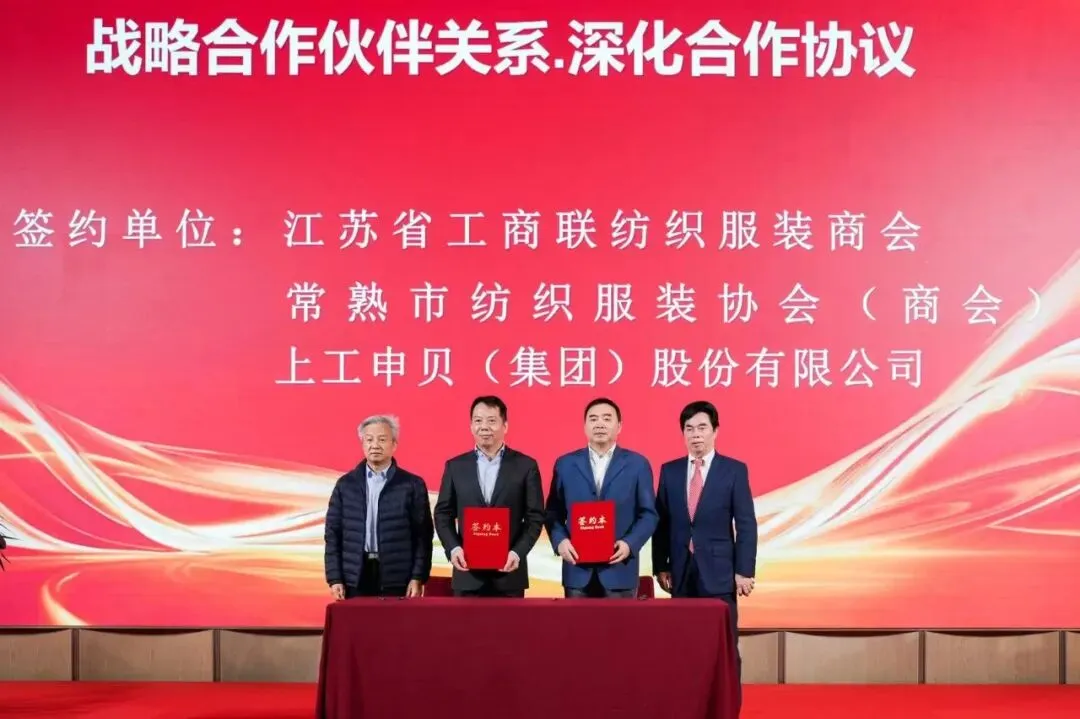 大会现场举行重要战略签约仪式。江苏省工商联纺织服装商会分别与上工申贝(集团)股份有限公司签署战略合作伙伴关系.深化合作协议,与江苏省纺织产品质量监督检验研究院签署纺织服装行业质量标准深化合作协议,与常州纺织服装职业技术学院服装学院签署产教融合合作协议,标志着行业在技术创新、质量提升、人才培养等领域的协同合作迈入新阶段。